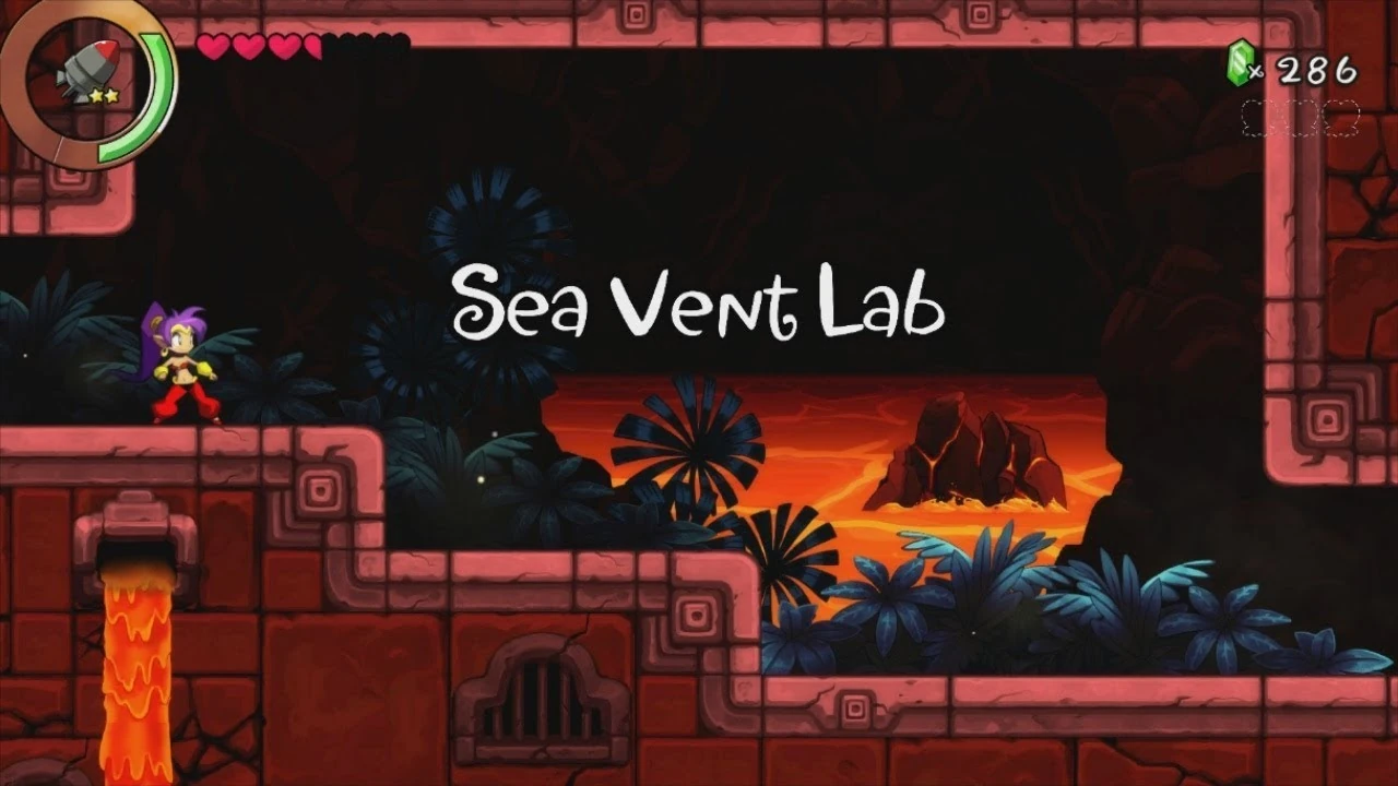 The Sea Vent Lab has two main puzzle elements. The first is a series of blue and red switches that must be switched on and off to progress through rooms, keeping in mind the way they affect other such switches throughout the dungeon. The second element are the large cannons scattered throughout the labyrinth, which Shantae needs her Bonker Tortoise form to use in order to break blocks and navigate though short mazes.
