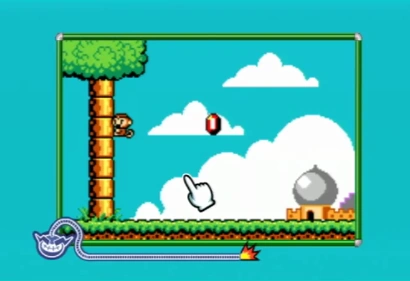 The game starts off with the series' protagonist, Shantae, in her Monkey form climbing up and down a tree. There is a gem bouncing on the ground in front of the tree. Pressing the action buttons makes Shantae dart away from the tree, similar to the Monkey Bullet technique. The objective of the game is for the player to get the gem, so that Shantae will get back to normal form and win the game. If Shantae misses the gem, the game automatically ends in a loss.