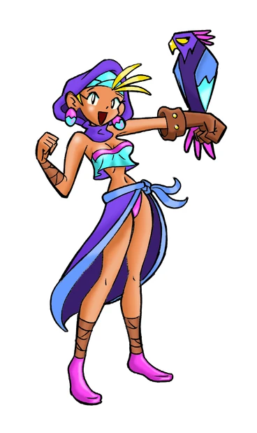 Sky is a warbird trainer and Shantae's best friend. She lives in Scuttle Town with her friends (Oasis Town in the first game), and keeps a pet bird named Wrench, who she uses to help Shantae get around places quickly.